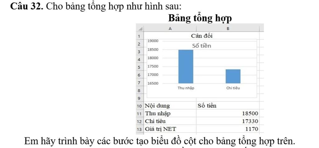 Em hãy trình bày các bước tạo biểu đồ cột cho bảng tổng hợp trên ...