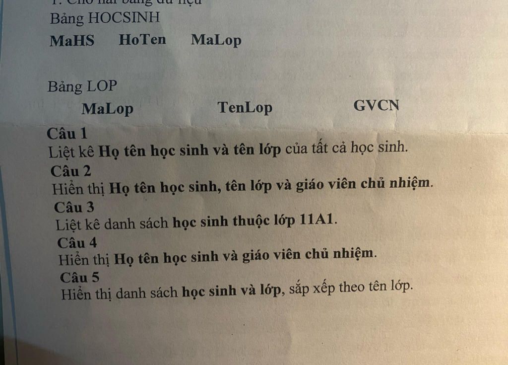 Hiển thị Họ tên học sinh, tên lớp và giáo viên chủ nhiệm.
