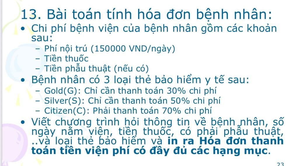 • Chi phí bệnh viện của bệnh nhân gồm các khoản