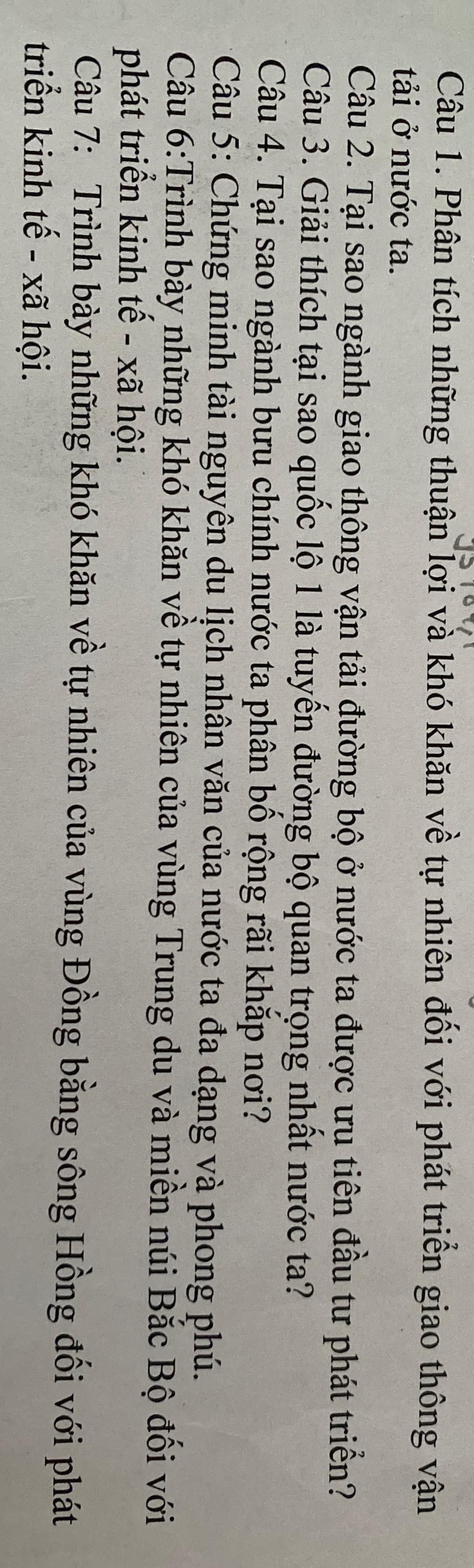 Câu 1. Phân tích những thuận lợi và khó khăn về tự nhiên đối với phát triển giao thông vận