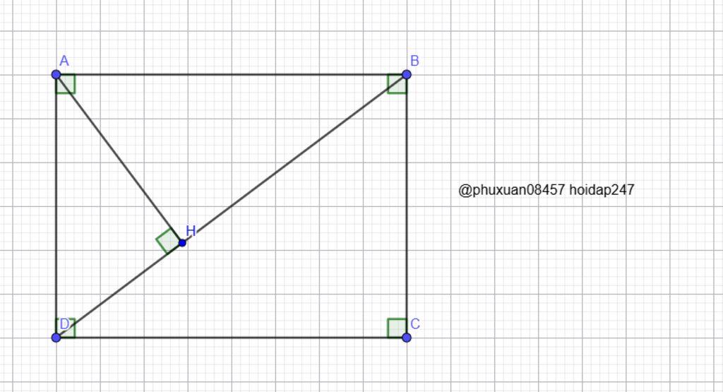 Vì tứ giác ABCD là hình chữ nhật nên AB // CD → $\widehat{ABH}$ = $\widehat{BDC}$ (hai góc so le trong)