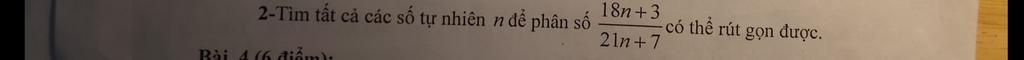 & \text{Kết quả: } n = 7k+1 \text{ (với } k \text{ là số tự nhiên) thì phân số } \dfrac{18n+3}{21n+7} \text{ có thể rút gọn được.}