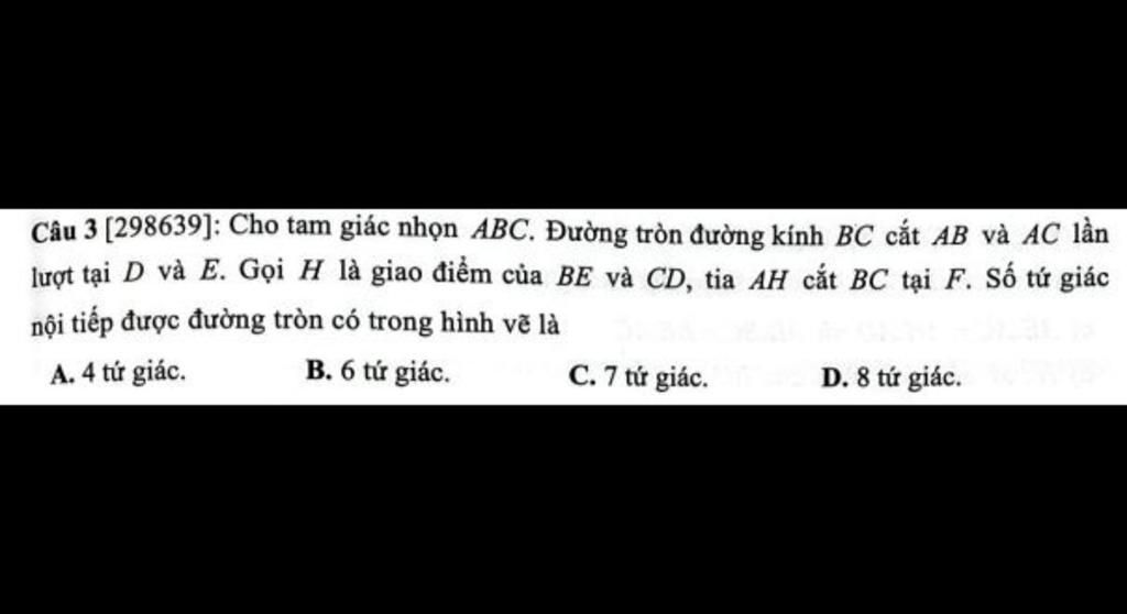 lượt tại D và E. Gọi H là giao điểm của BE và CD, tia AH cắt BC tại F. Số tứ giác