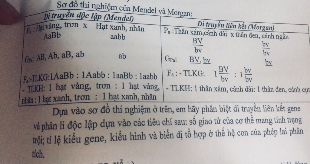 Sơ đồ thí nghiệm của Mendel và Morgan: