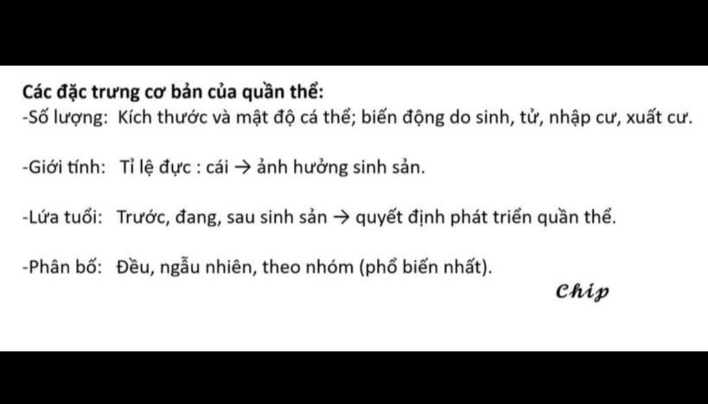 -Số lượng: Kích thước và mật độ cá thể; biến động do sinh, tử, nhập cư, xuất cư.