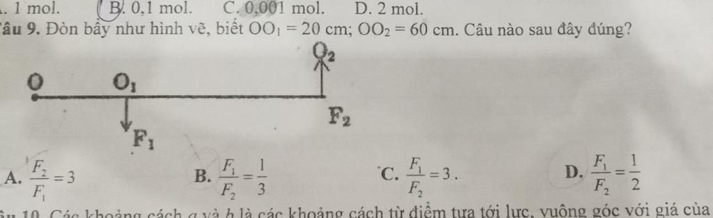 Đáp án `C` chứ ạ đáp án `A` là `(F_2)/(F_1) = 3` mà ạ! Chứ đâu có phải `(F_1)/(F_2) = 3`