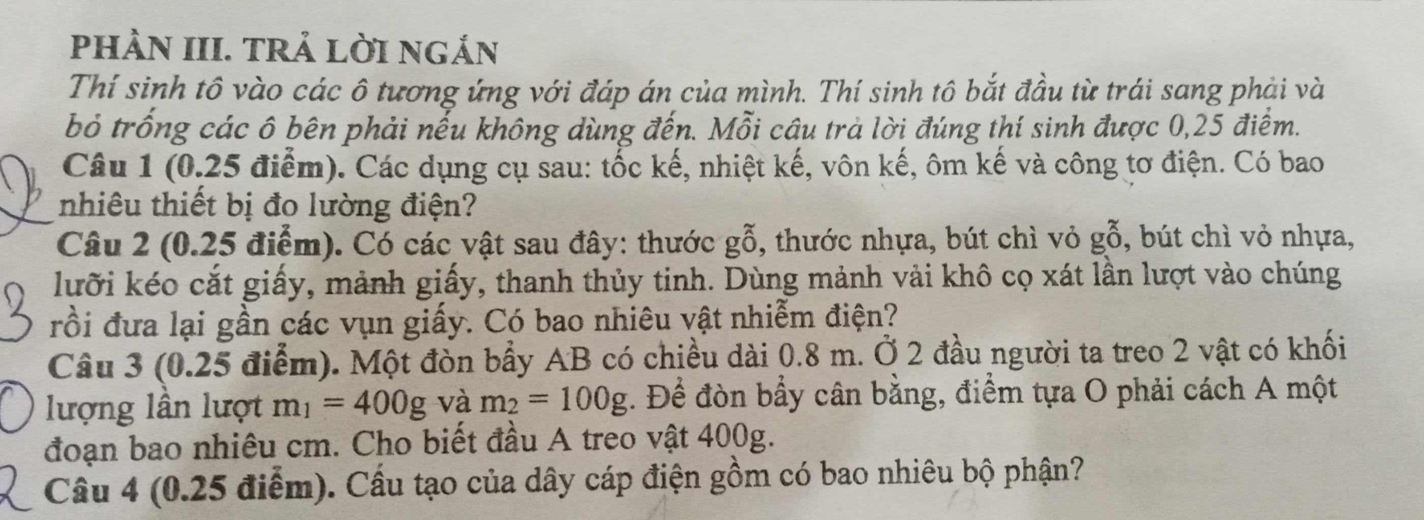 `-` Thước gỗ, bút chì vỏ gỗ, lưỡi kéo cắt giấy thường không nhiễm điện hoặc nhiễm điện yếu nên không đủ mạnh để hút các vụn giấy