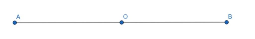 Nhìn vào hình vẽ đã cho ta thấy: `O` là trung điểm của đoạn thẳng `AB`