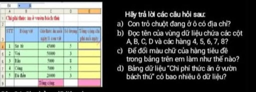 a). Con trỏ chuột đang ở ô có địa chỉ?