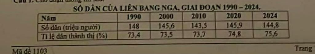 đúng: có 2 mục chính là số dân và tỉ ệ thành thị ở hàng ngang, ngoài ra, ở cột dọc có 5 mục trải dài từ 1990 và 2024
