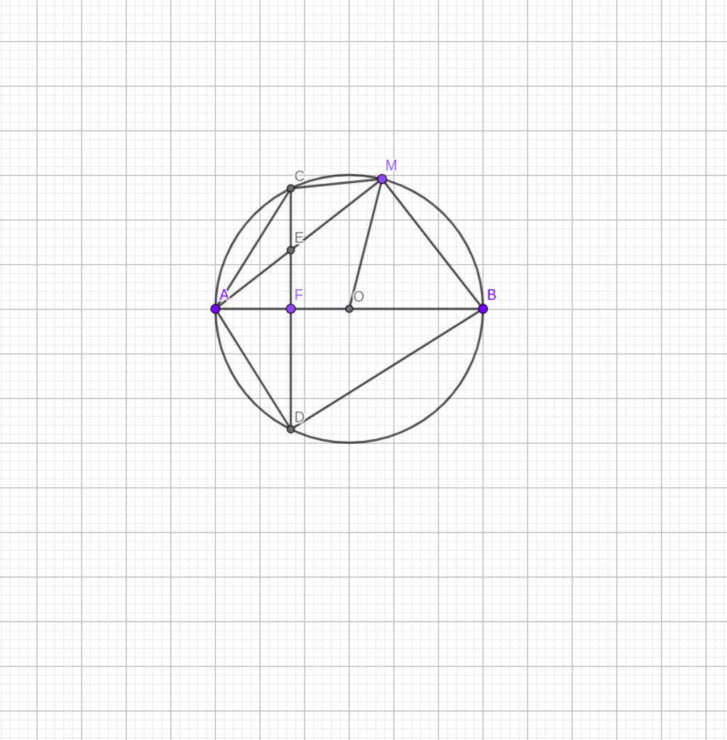 cho đường tròn tâm O, đường kính AB, dây CD vuông góc với AB tại F. gọi M là một điểm thuộc cung nhỏ BC (M khác B, C) , hai đường thẳng AM và CD cắt nhau E.