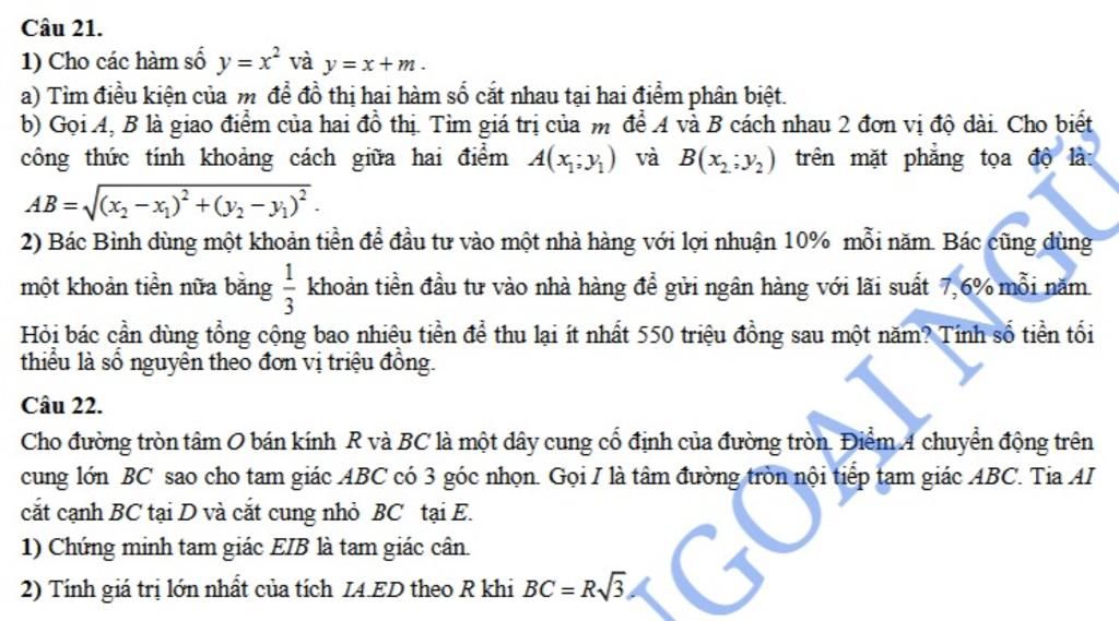 & \text{Tọa độ hai giao điểm là } A(x_1; x_1 + m) \text{ và } B(x_2; x_2 + m). \\