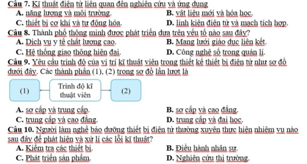 Câu 7. Kĩ thuật điện tử liên quan đến nghiên cứu và ứng dụng
