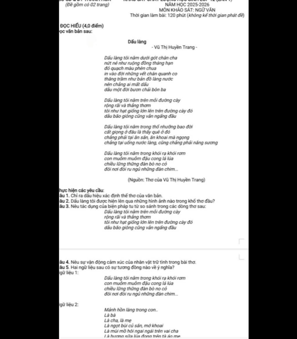 + ý thức rõ về cội nguồn : Dấu làng” hiện diện trong cảnh vật yên bình (khói rạ, đàn bò…)