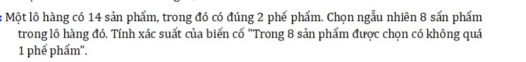 Chọn ngẫu nhiên $8$ sản phẩm từ $14$ sản phẩm