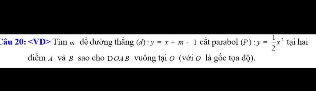 Để $(d)$ cắt $(P)$ tại hai điểm phân biệt $A$ và $B$ thì phương trình trên phải có hai nghiệm phân biệt