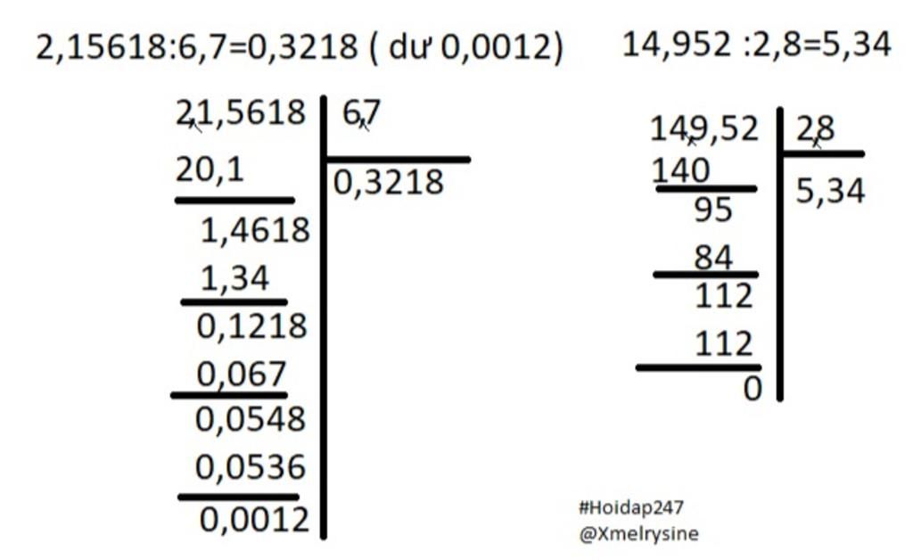 Đặt tính rồi tính. 2,15618÷6,7 14,952 ÷2,8