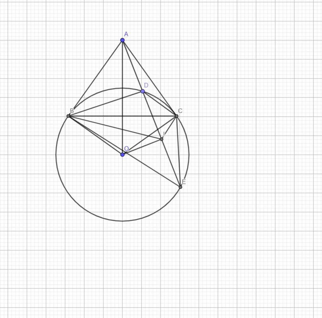 b, Trên cung lớn BC lấy điểm E sao cho E khác B và C. Kẻ OI vuông góc vs AE và Gọi D là giao đỉểm thứ hai của AE và đường tròn (O;R). Chứng minh BOC=2.AIC và EIB=DBC