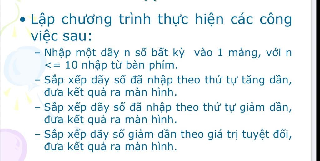 printf("Giam dan theo gia tri tuyet doi: ");