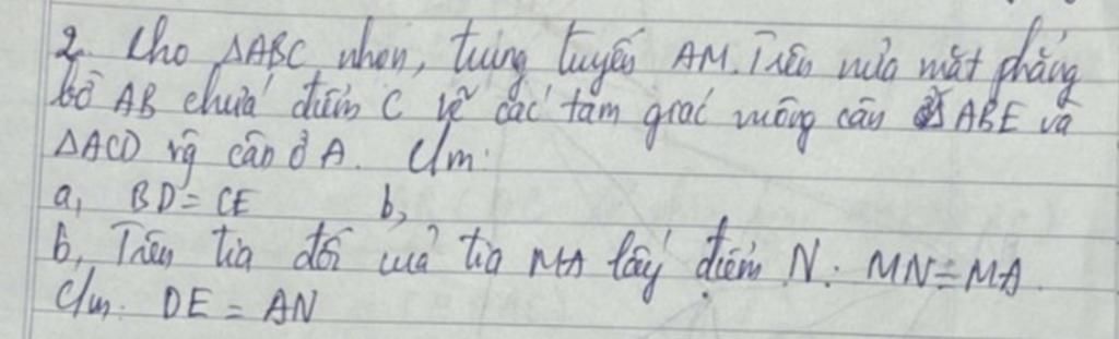 a.Xét $\Delta ABD,\Delta ACE$ có: