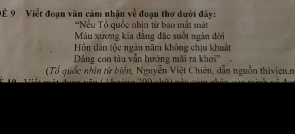 Như vậy,đoạn thơ "Tổ quốc nhìn từ biển" của Nguyễn Việt Chiến là một trong những tác phẩm tiêu biểu và đầy ý nghĩa.Qua đoạn thơ tác giả đã gửi gắm cho ta thông điệp rằng:Phải nhớ về sự hi sinh to lớn của cha ông.Vì vậy mỗi con người chúng ta luôn phải trân trọng những gì cha ông ta để lại.