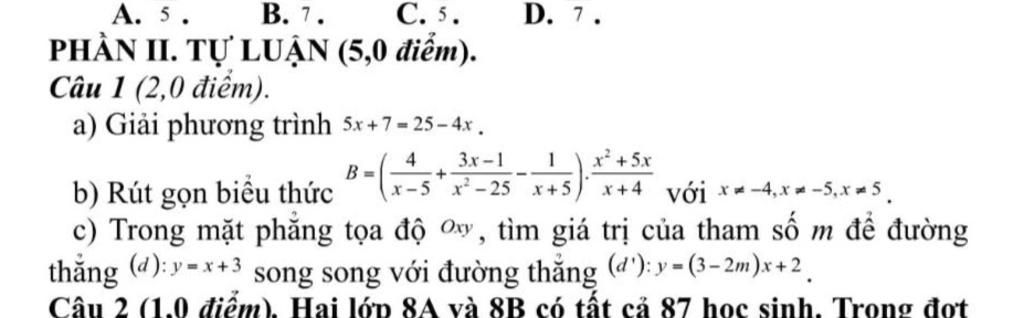 `B=(4/(x-5)+(3x-1)/(x^2 -25)-1/(x+5)) . (x^2 +5x)/(x+4)` với `x \ne {-4;+-5}`