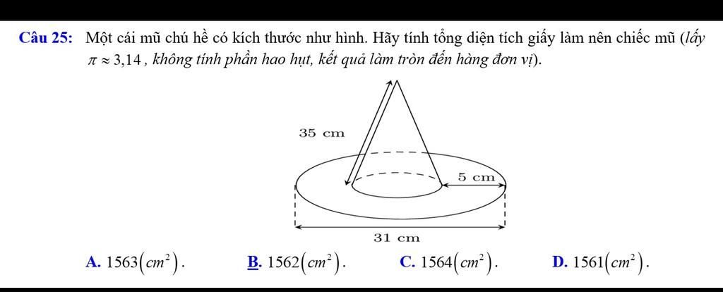 `S=S_(xq)+S_(vành)=1153,95+408,2=1562,15~~1562 \ (cm^2)`