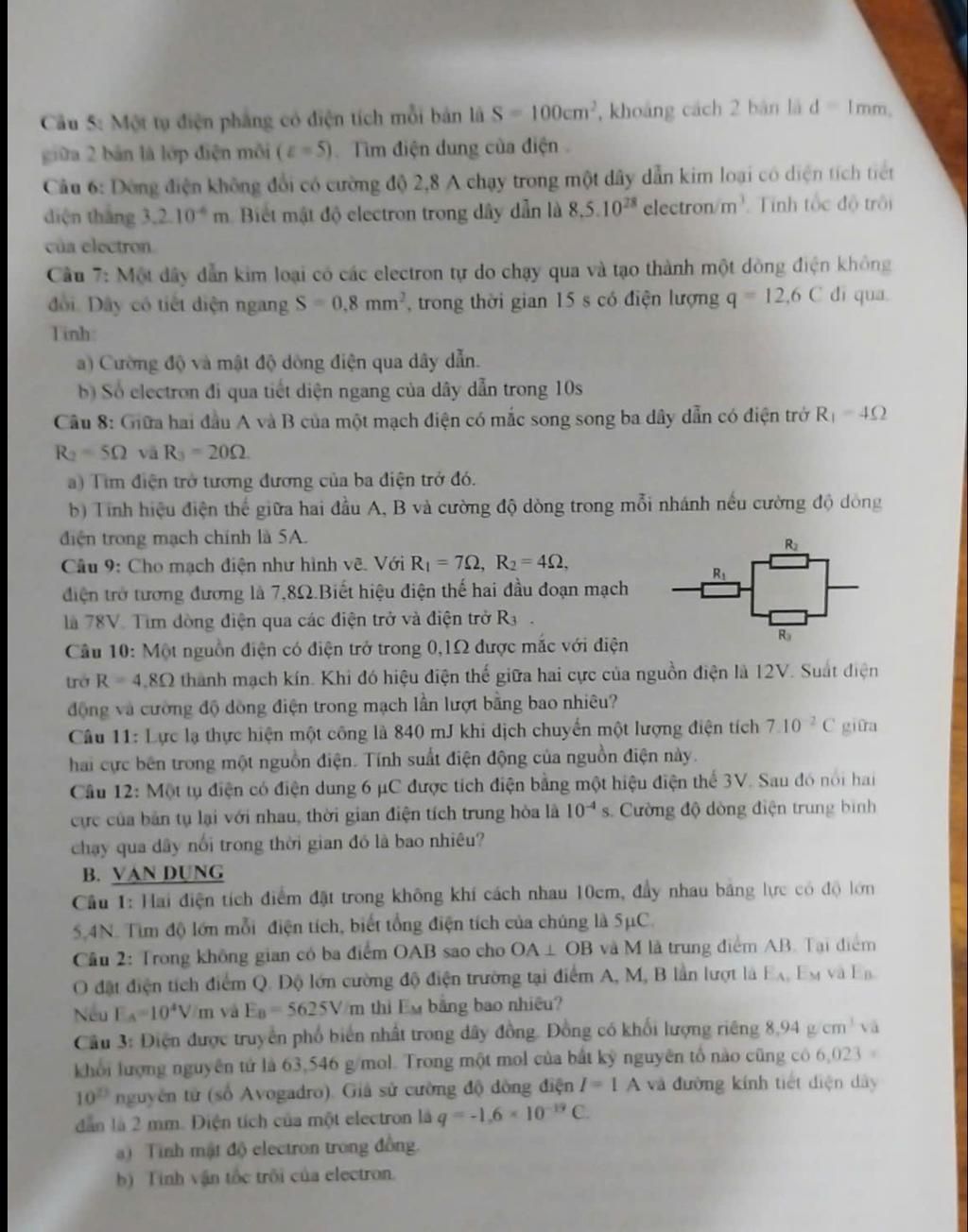 \(v = \dfrac{I}{{neS}} = \dfrac{{2,8}}{{8,{{5.10}^{28}}.1,{{6.10}^{ - 19}}.3,{{2.10}^{ - 6}}}} = 6,{43.10^{ - 5}}\left( {m/s} \right)\)