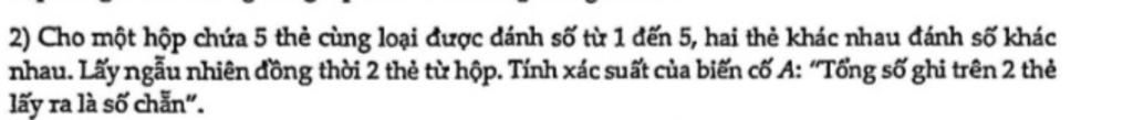 Biến cố $A$: "Tổng số ghi trên $2$ thẻ lấy ra là số chẵn"
