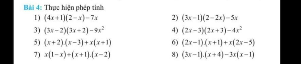 `= 4x.(2-x) + 1.(2-x) - 7x`