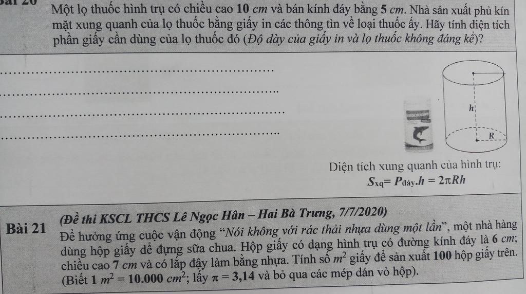 Diện tích phần giấy phủ kín mặt xung quanh của lọ thuốc đó là