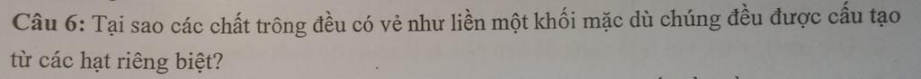 -Các chất trông như liền một khối vì các hạt cấu tạo nên chất có kích thước vô cùng nhỏ
