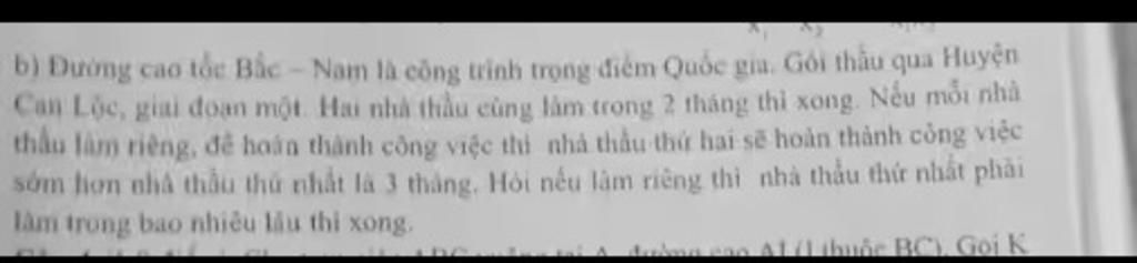 Thời gian nhà thầu thứ hai làm riêng là `x-3` (tháng)
