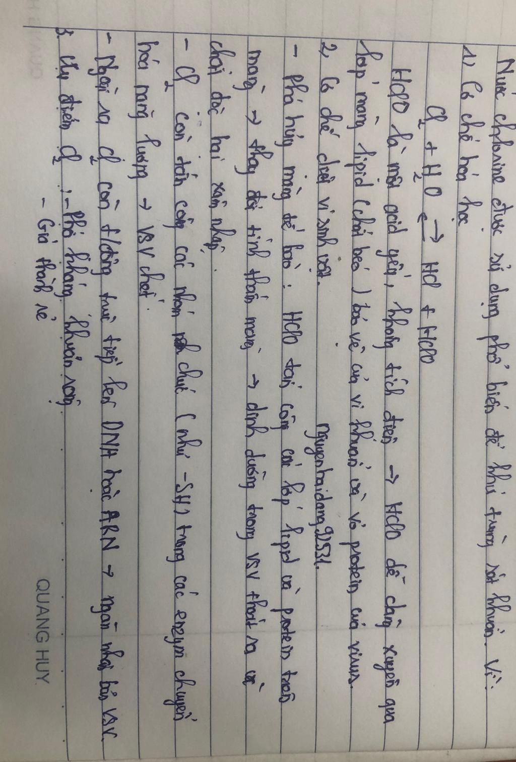 ` - ` Phương trình tạo ra Acid Hipoclorơ (axit yếu, không bền, nhưng dễ phân huỷ, là ` 1 ` chất rất quan trọng)