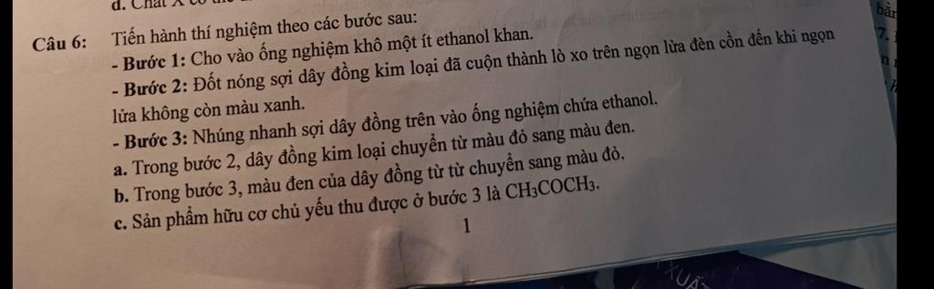 Bước `3:` $CuO$ oxy hóa ethanol ($\text{C}_2\text{H}_5\text{OH}$) thành acetaldehyde ($\text{CH}_3\text{CHO}$), đồng thời $Cu$ được giải phóng: