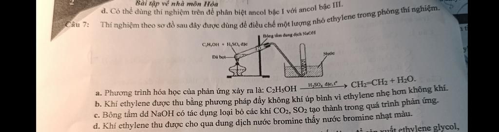 d) Ethylene + nước brom → làm nhạt màu ( phản ứng cộng )