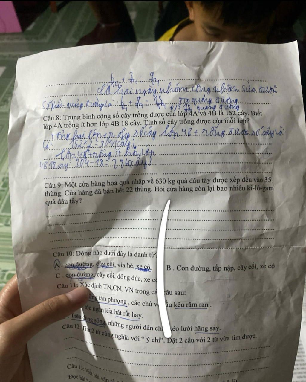Đáp số : `4A:143` cây, `4B:161` cây