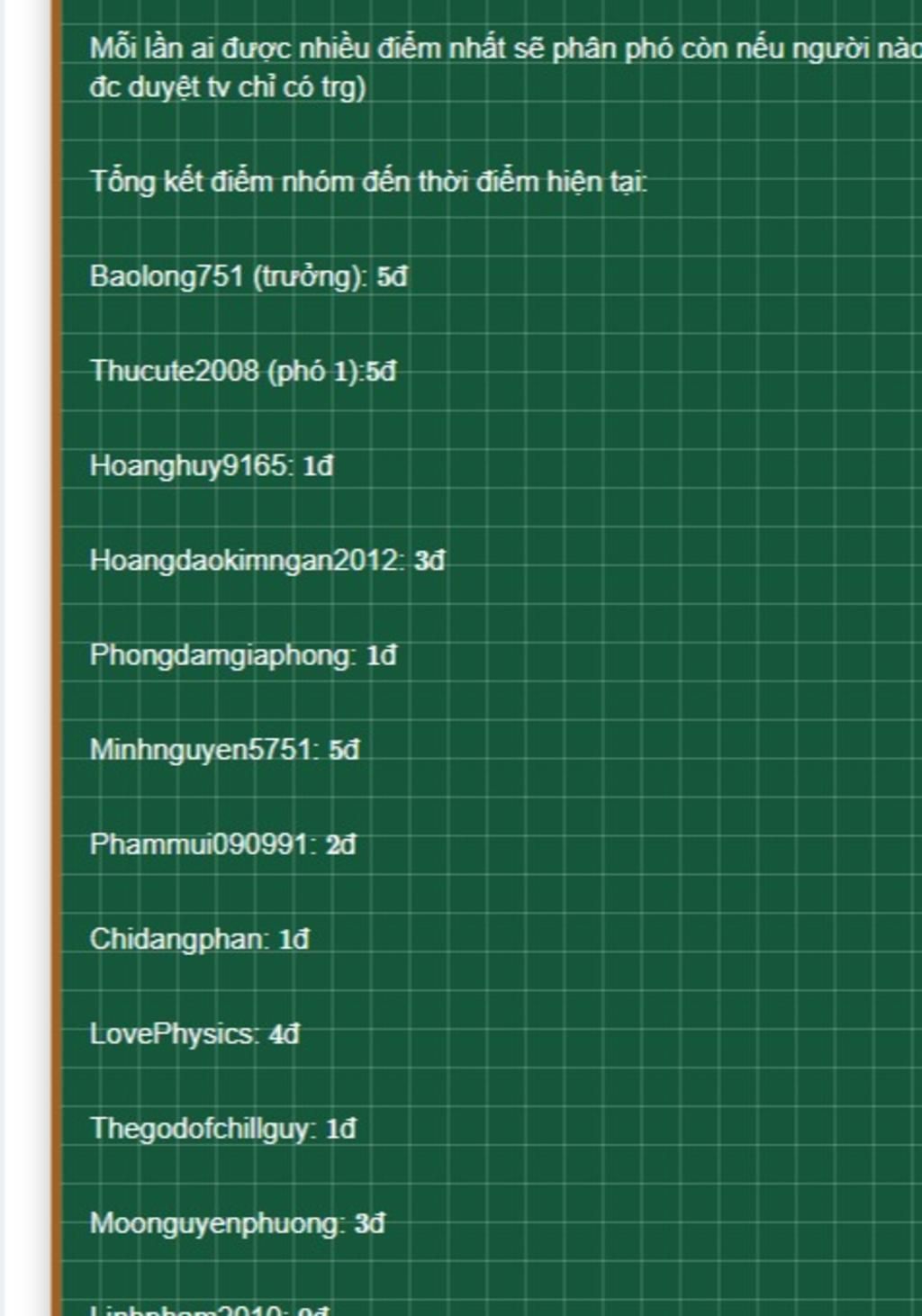 Tổng kết điểm nhóm đến thời điểm hiện tại