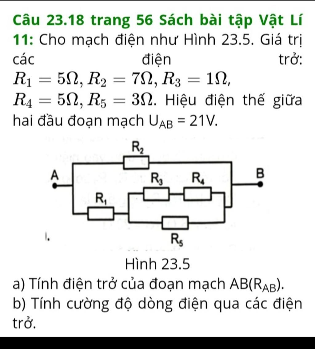 11: Cho mạch điện như Hình 23.5. Giá trị