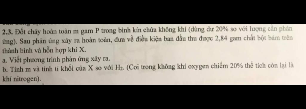 2.3. Đốt cháy hoàn toàn m gam P trong bình kín chứa không khí (dùng dư 20% so với lượng cần phản