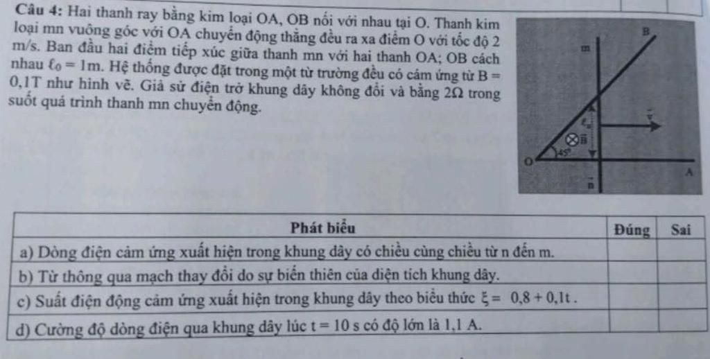 Câu 4: Hai thanh ray bằng kim loại OA, OB nối với nhau tại O. Thanh kim