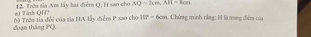 `a)`Vì điểm `Q` nằm giữa hai điểm `A` và `H`