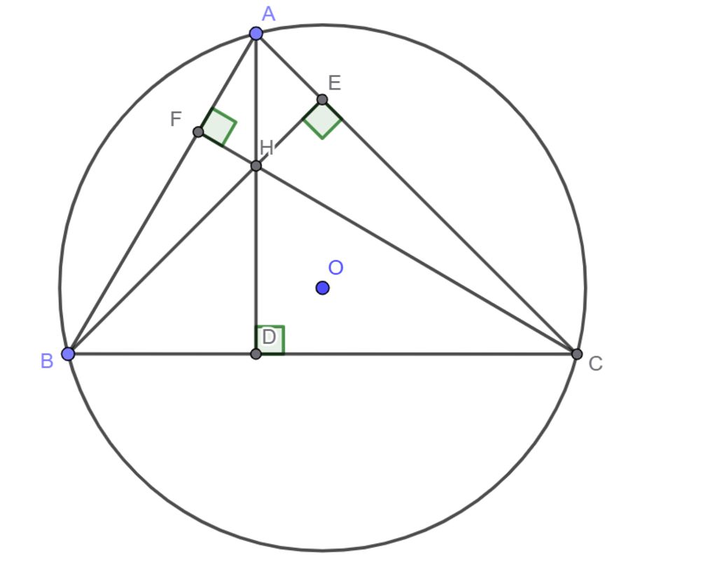 Cho tam giác nhọn ABC nội tiếp đường tròn và các đường cao AD , BE , EF cắt nhau tại trực tâm H vẽ hình nhanh giúp mik với 5 : 55 ah