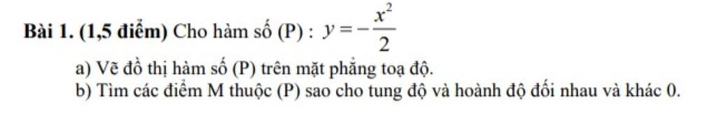Vì $M$ thuộc $(P)$ nên tọa độ của $M$ phải thỏa mãn phương trình $y = -\frac{x^2}{2}$.