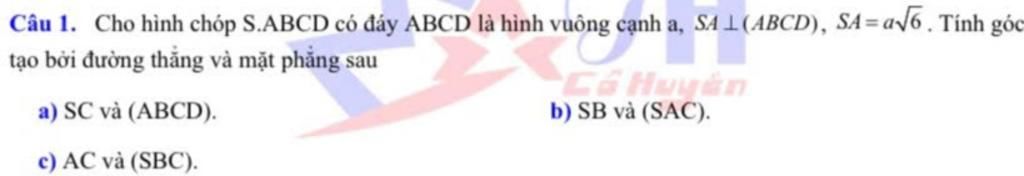 & \text{a) Tính góc tạo bởi } SC \text{ và } (ABCD) \\