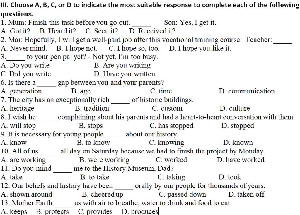 D. Have you written → “yet” → thì hiện tại hoàn thành.