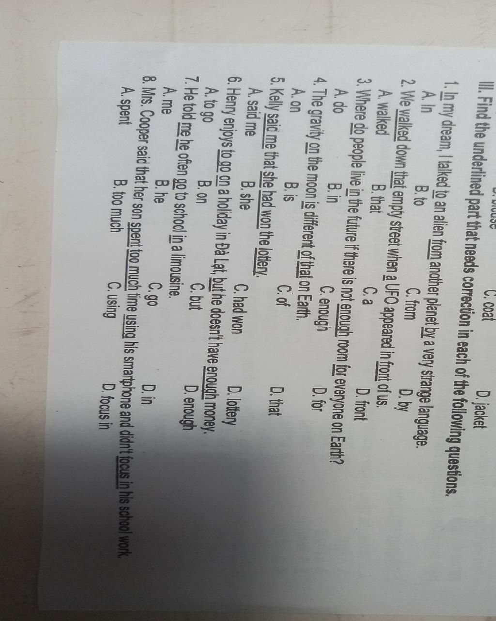 8. D (focus on)