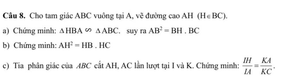 $\to \dfrac{IH}{IA}=\dfrac{BH}{BA}=\dfrac{BA}{BC}=\dfrac{KA}{KC}$