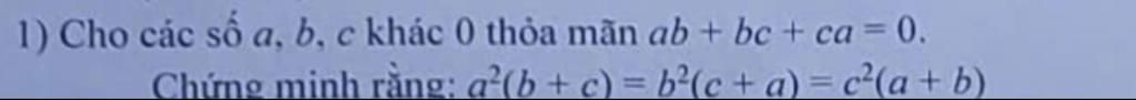 `a^2 ( b+c) = b^2 ( a+c )= c^2 ( a+b ) ` `( " đpcm " ) .`