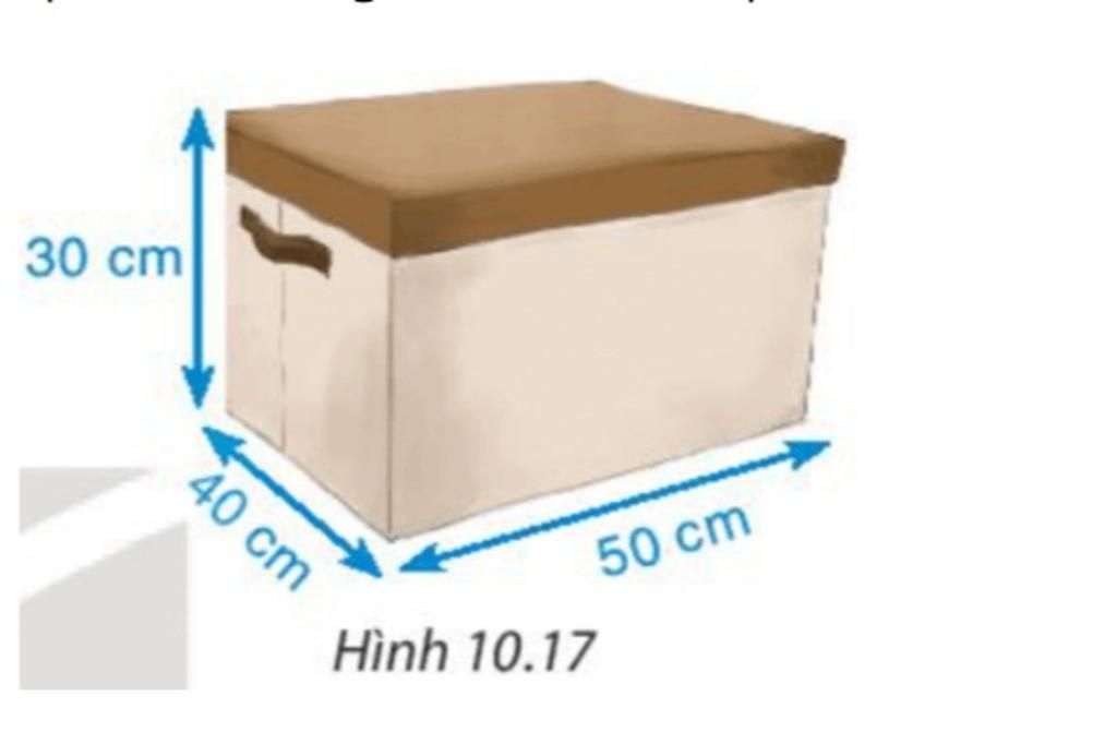 Bài 10.8 trang 93 Toán 7 Tập 2: Một chiếc hộp đựng đồ đa năng có dạng hình hộp chữ nhật với khung bằng thép, bên ngoài phủ vải và kích thước như Hình 10.17.